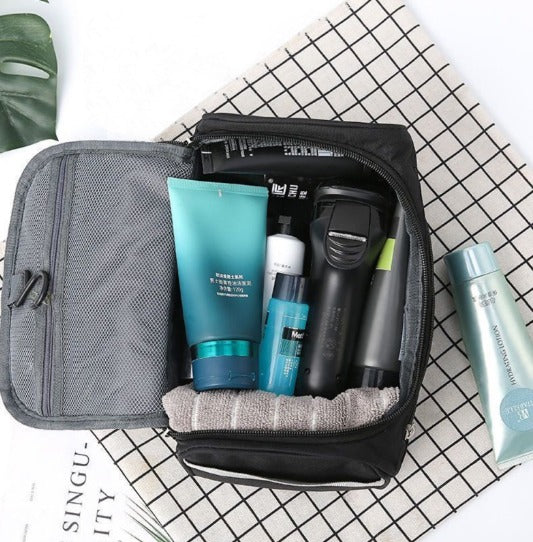 L'organizer da toilette da uomo impermeabile David è progettato per gli uomini moderni che apprezzano la praticità e lo stile. Il suo materiale impermeabile garantisce che i tuoi oggetti essenziali rimangano protetti da schizzi e umidità, rendendolo perfetto per i viaggi o l'uso in palestra. Con un interno spazioso, può ospitare facilmente tutti i tuoi articoli per la toelettatura e gli articoli da toilette.